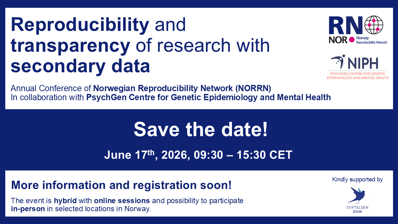 Reproducibility and transparency of research with secondary data: NORRN 2026 Annual Conference in collaboration with PsychGen